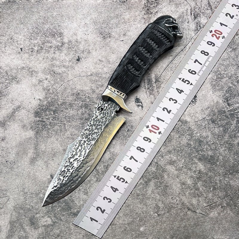 Black Skull Damascus Damascus Forged Knife Steel Outdoor Straight Knife Camping Portable
